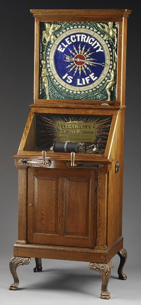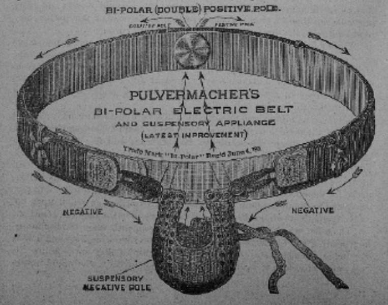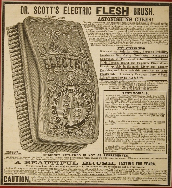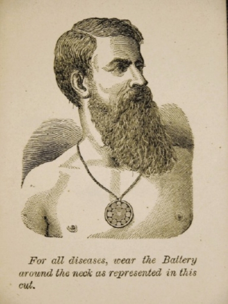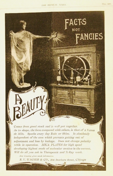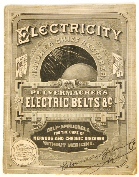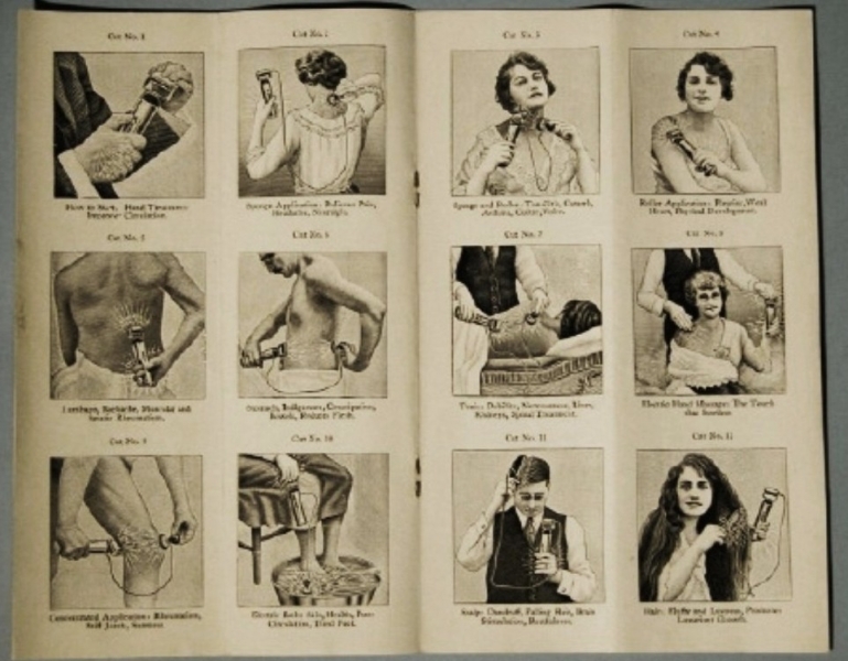 Electricity could be produced in a number of ways, and entrepreneurs were eager to capitalize on a growing and unregulated industry. Faradic, galvanic, wet and dry cell batteries, and static electricity produced direct current for home devices before indirect current was available to power larger machines in doctors’ offices.